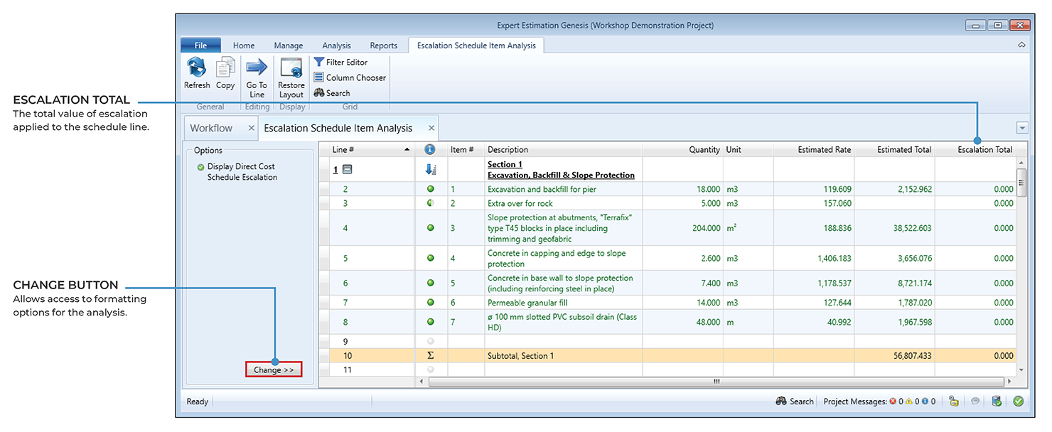 Note: The analysis will show only combined escalated totals for each item. The escalation value per resource is displayed within the Escalation Value columns in the Resource Explorer.