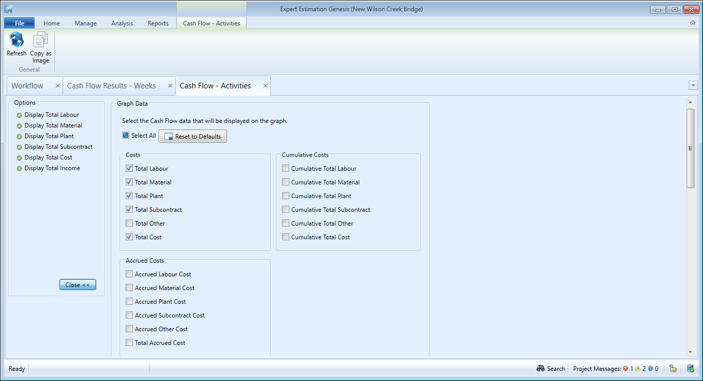 Note: All data points available in the Cost section have an additional check-box available to display the cumulative value. These are located in the section called Cumulative Costs.