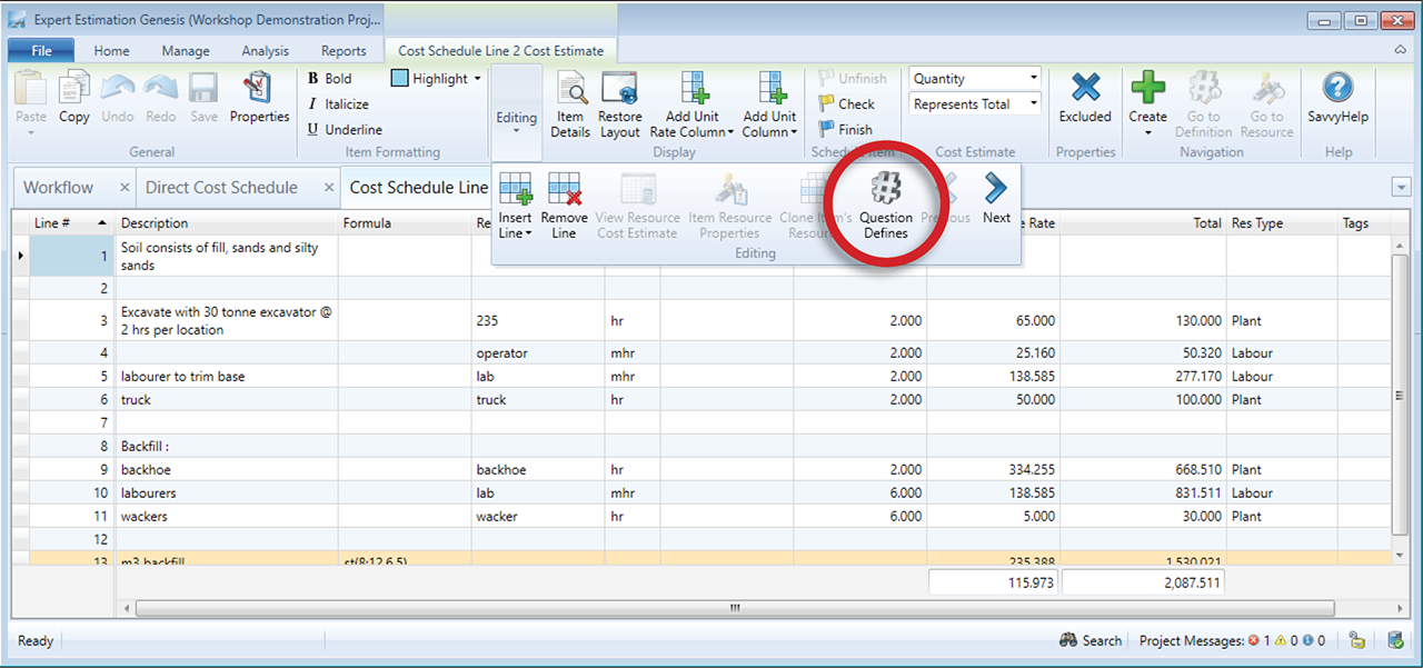 Question Defines make this process easy and can be utilised in the Cost Estimates of Group Resources, Direct Cost and Overhead Cost Schedule Items.