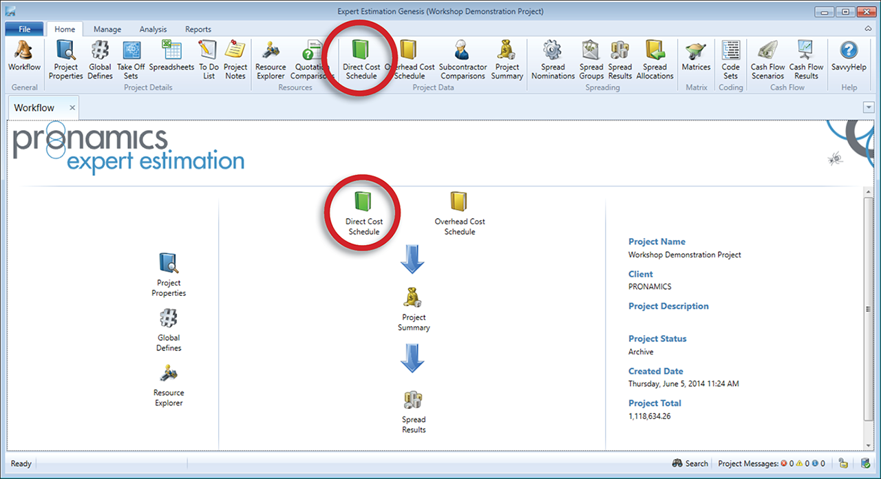 The Direct Cost Schedule is a workspace used to create and manage the list of items required to be completed and presented to your client at submission.