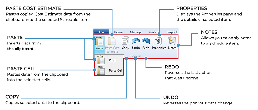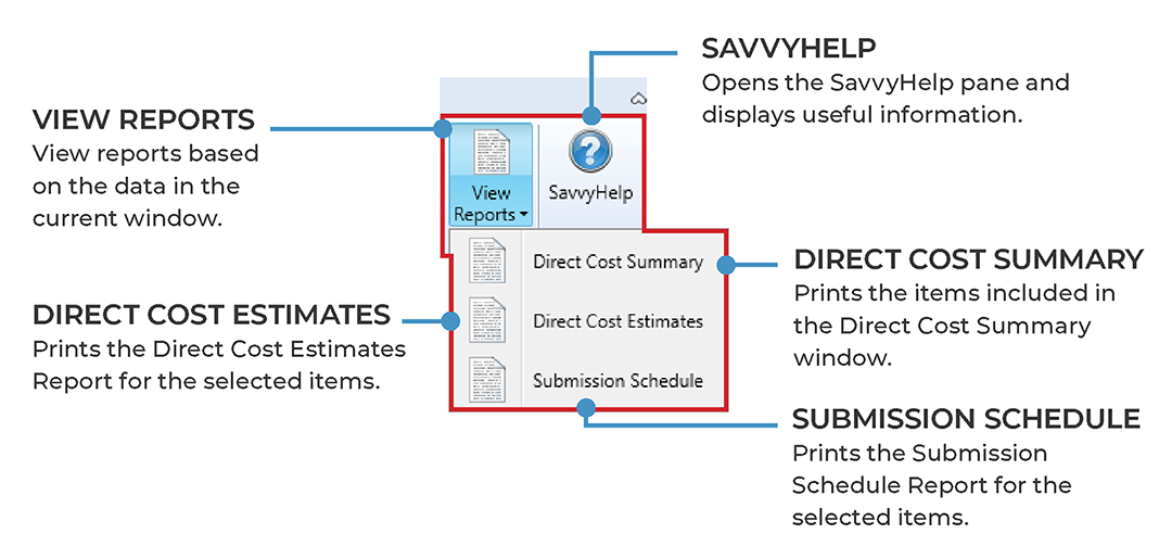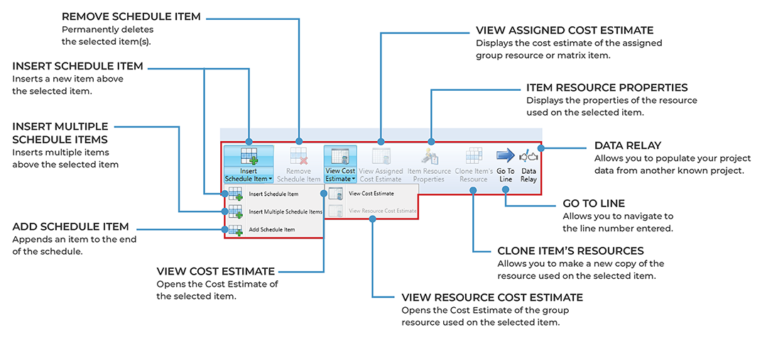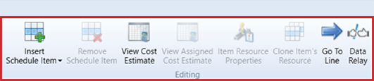 Direct Cost Schedule – ribbon toolbar (Refer to the following image popups for more detail.)