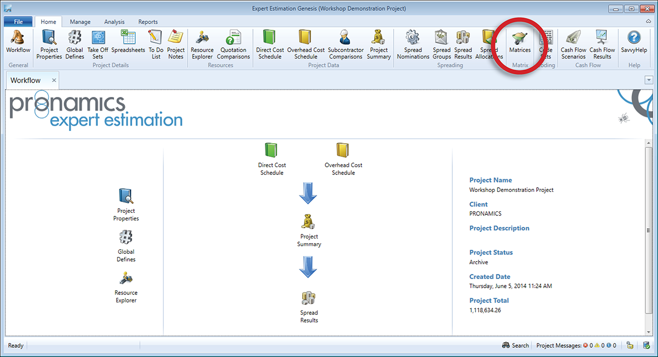 Matrices, within Expert Estimation, represent collections of related items that share a common set of attributes. The values of these attributes can then be referenced when estimating the rates of individual units of work.