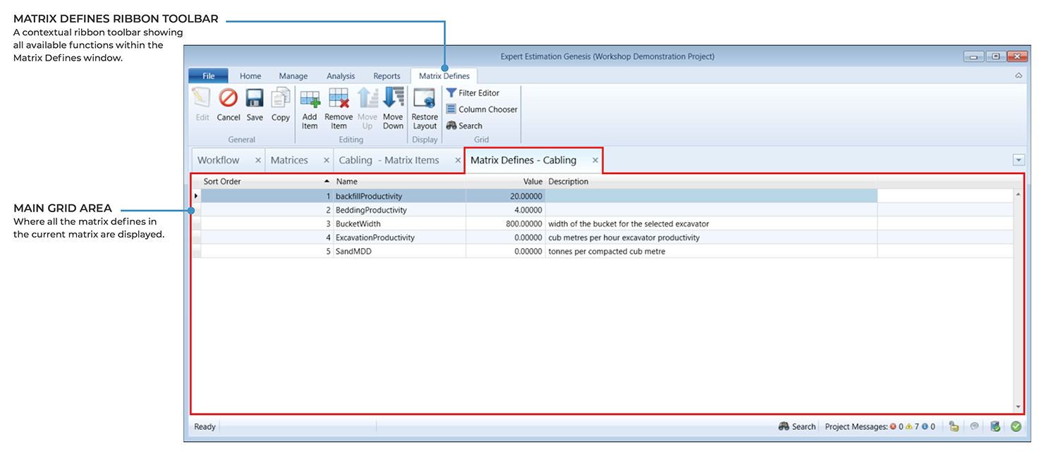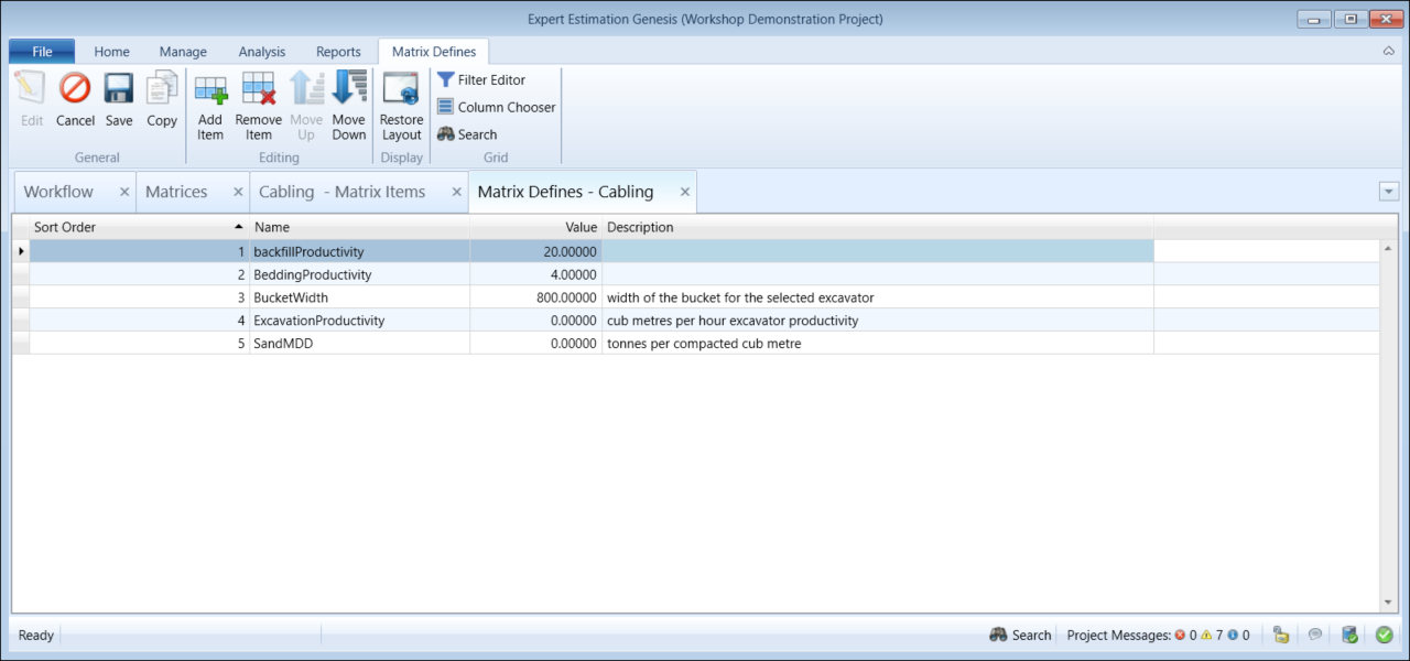Unlike Matrix Attributes, these defines allow you to record a consistent value to be used across multiple Matrix Item Cost Estimates and be updated automatically from a single location.