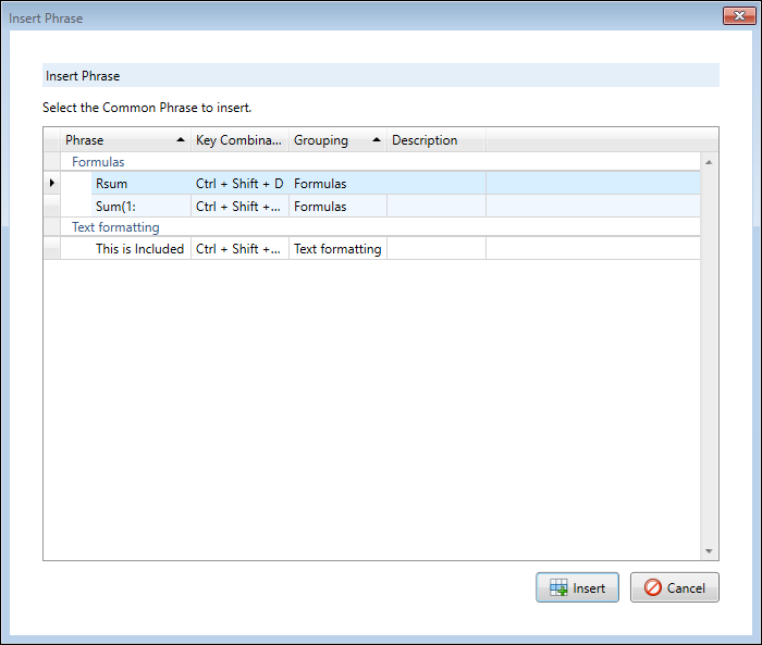 Insert Phrase Selection window