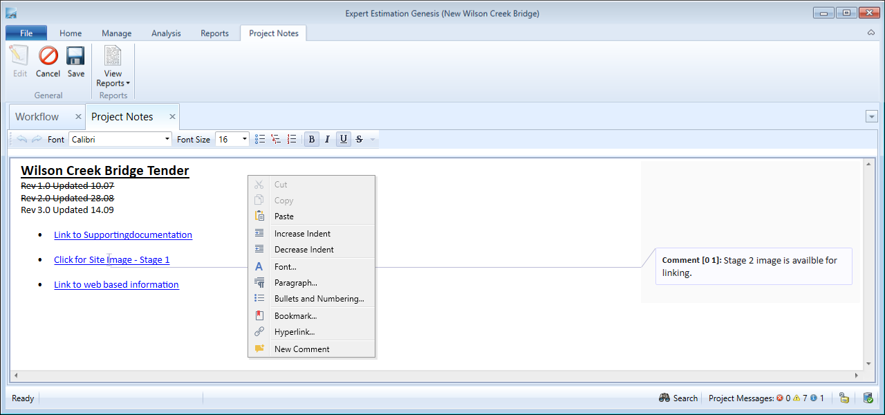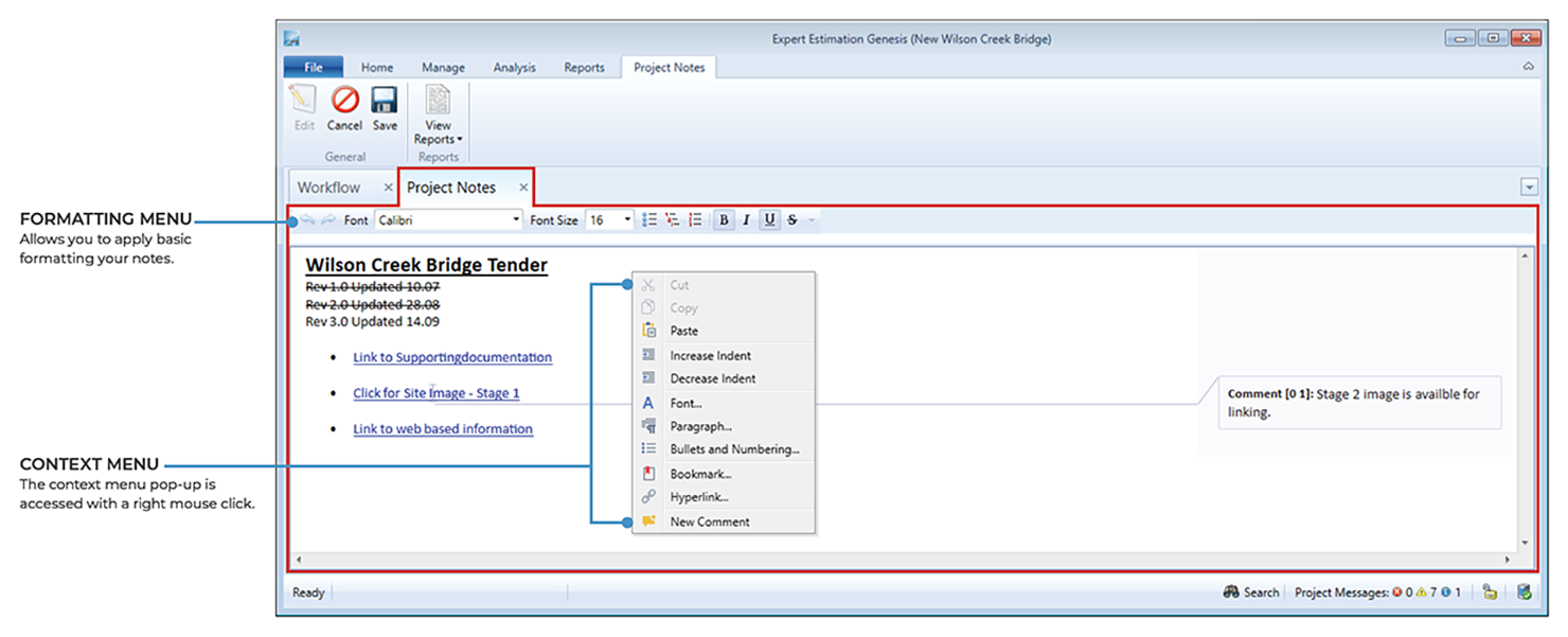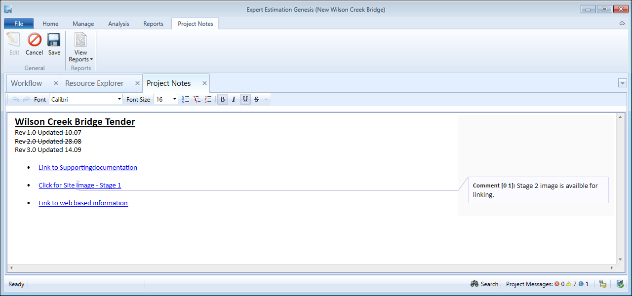 Project Notes allows you to create notes that relate to the project, allowing you to convey necessary information to other users that will assist them in working on the project. For example, hyperlinks to supporting documentation.