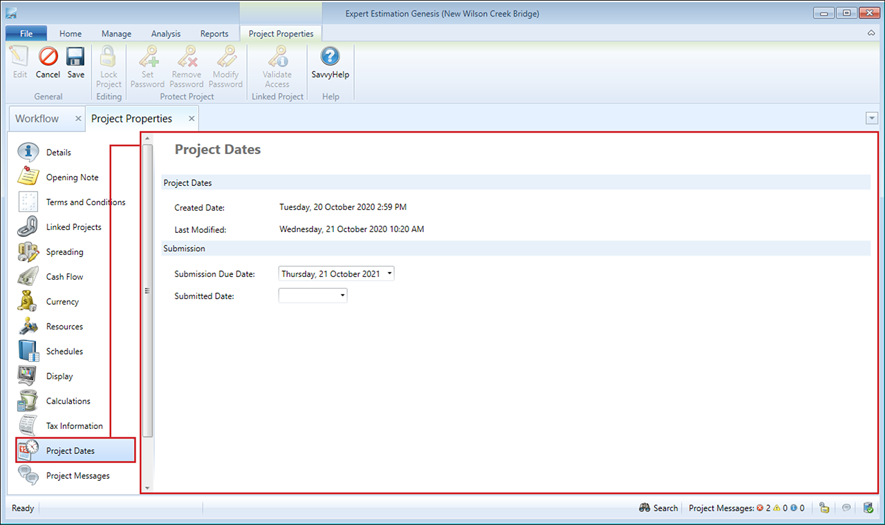 The Last Modified field displays the date on which the project was last modified. The date shown may become out of date if the project is modified whilst the Project Properties window is opened. Note: This cannot be modified and is automatically generated. |