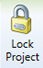 When a lock has been set on a project, the Lock icon in the ribbon toolbar will have a blue highlight surrounding the ribbon toolbar button. When locked, the Status bar will display a locked padlock (