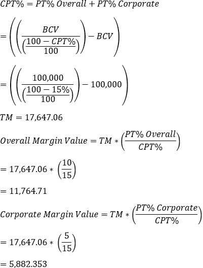 - PT% Corporate = The percentage specified of Project Total for Corporate margin = 5%