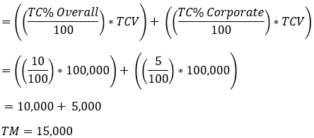 - TC% Corporate = The percentage specified on Total Costs for Corporate margin = 5%