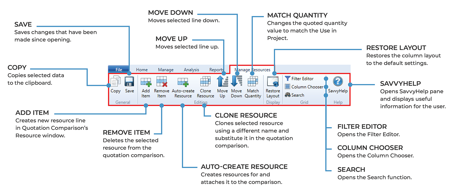 Quotation Comparisons Resources – Ribbon Toolbar