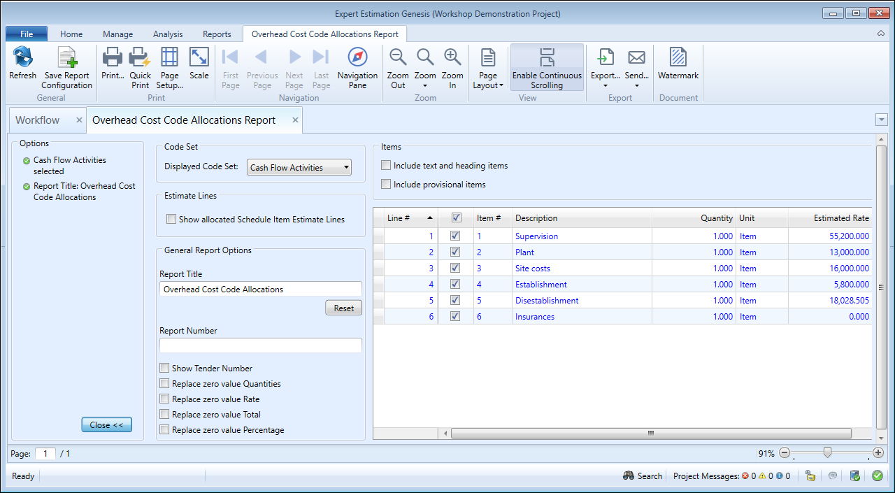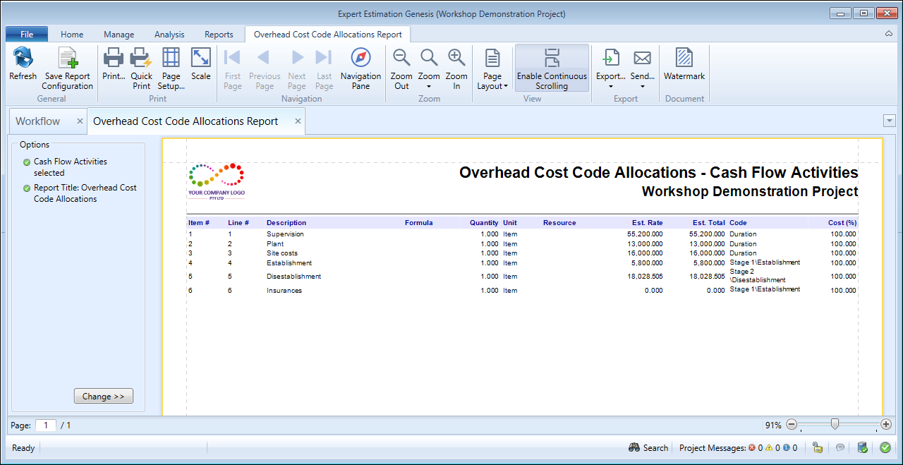 Overhead Cost Code Allocations Report - formatting options