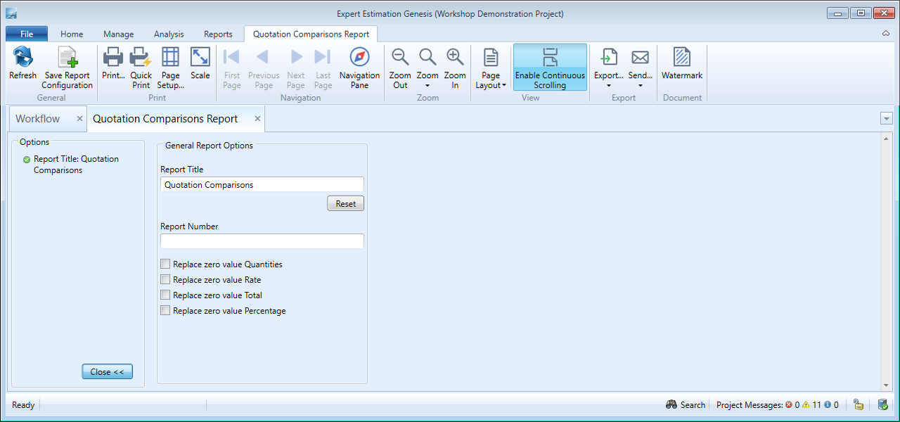 Quotation Comparisons Report - formatting options