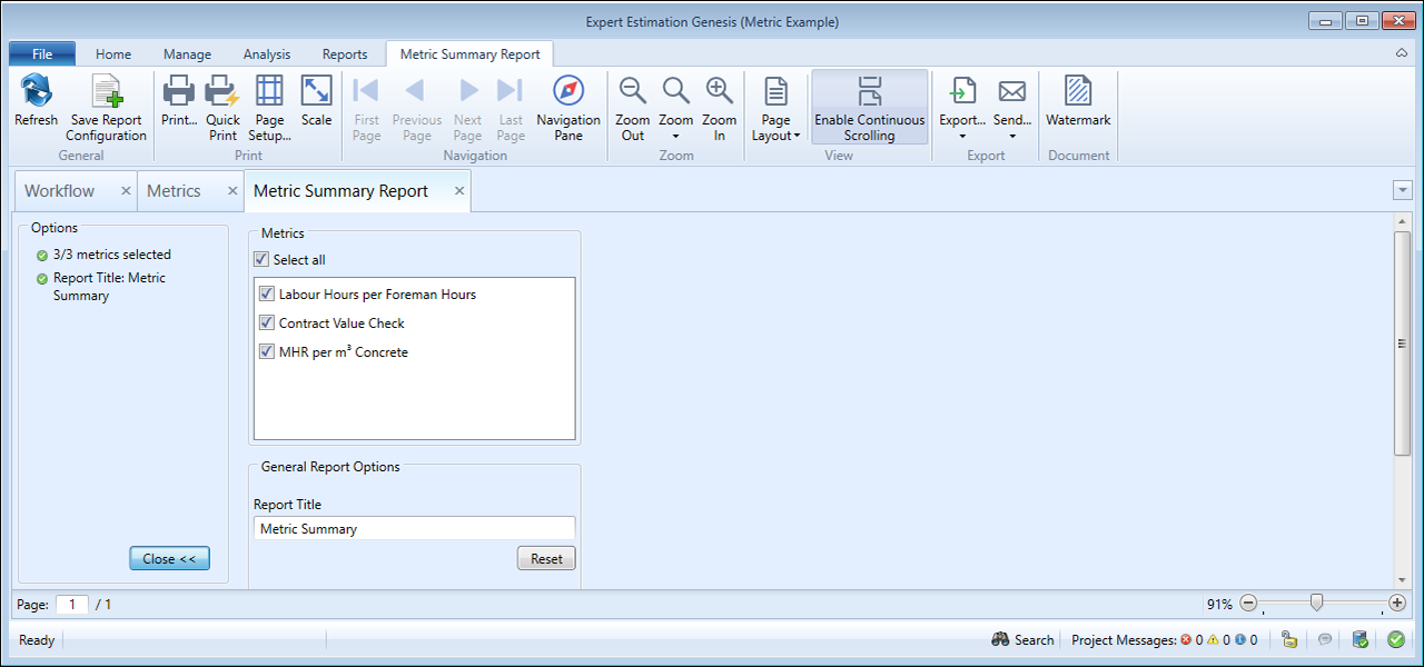 The Metric Summary report provides a printable breakdown of the Metrics in the current project so that you can analyse the data from a top level.