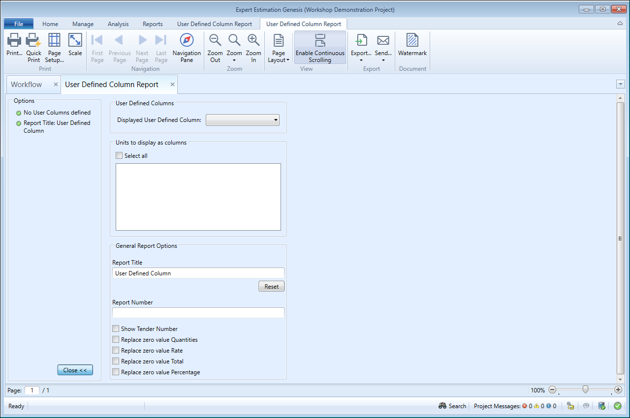 User Defined Column Report