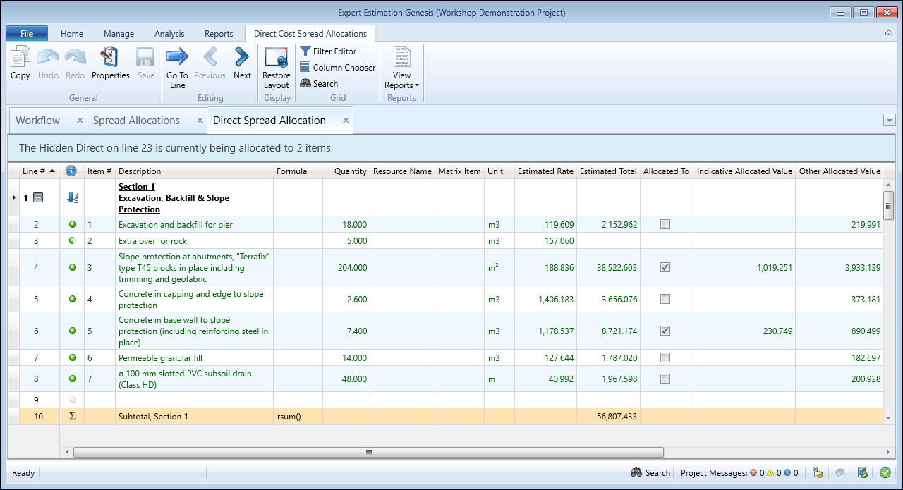 Note: The Direct Spread Allocations window cannot be accessed if two items with different Weightings are selected.