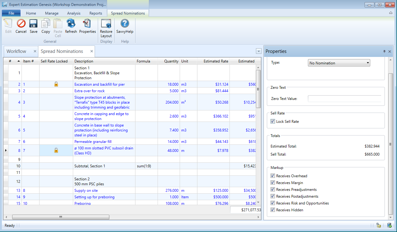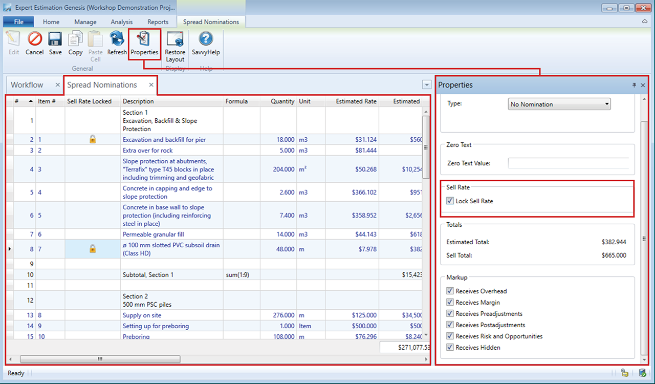 In addition to controlling the Sell Value of a Direct Cost Item using nominations, you have the ability to lock the sell rate of selected items to the currently calculated sell rate of the item.