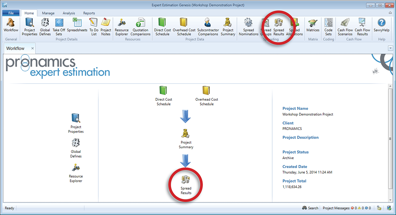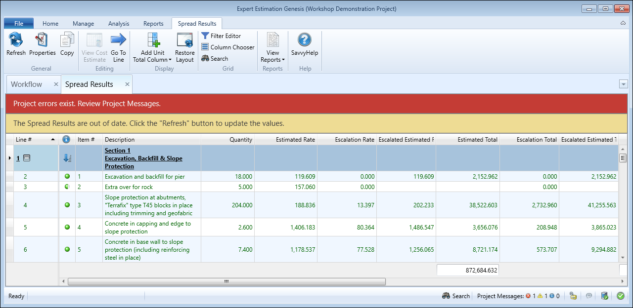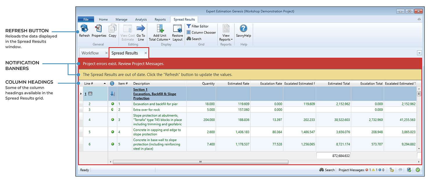Note: All project error messages must be resolved before a spread can be calculated.