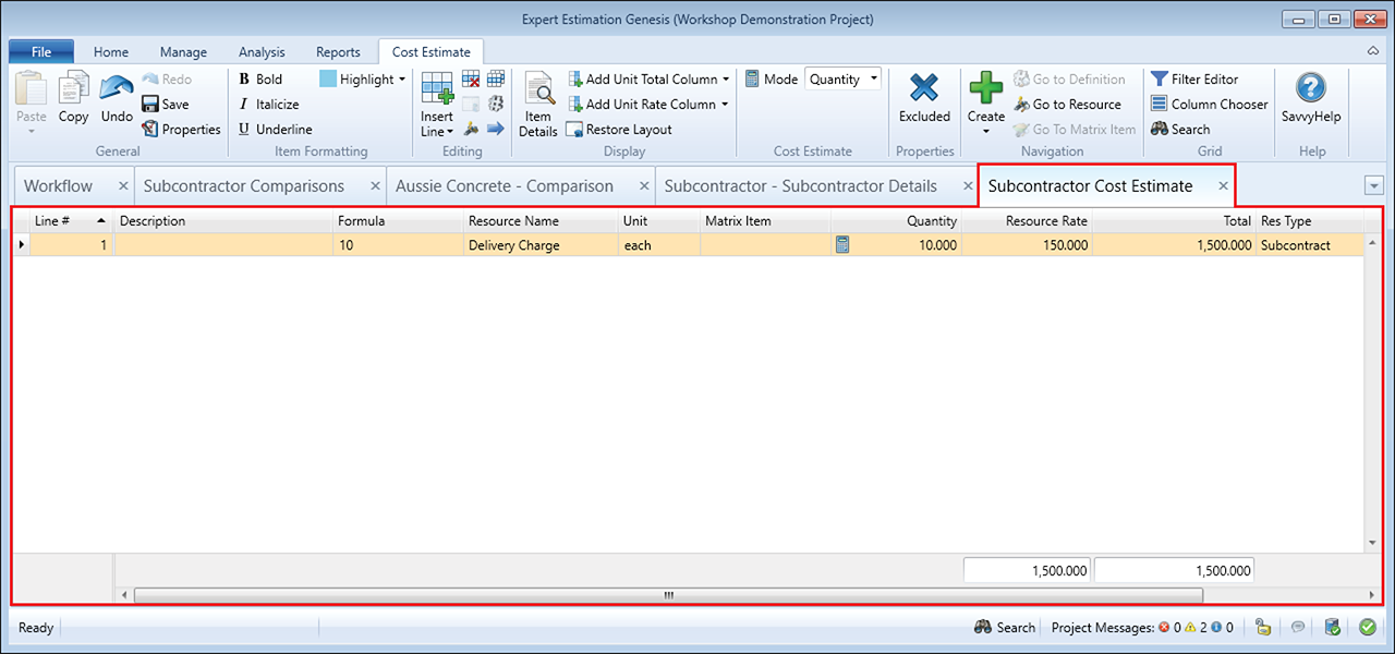 Subcontractor Comparisons – Independent Cost Estimate window
