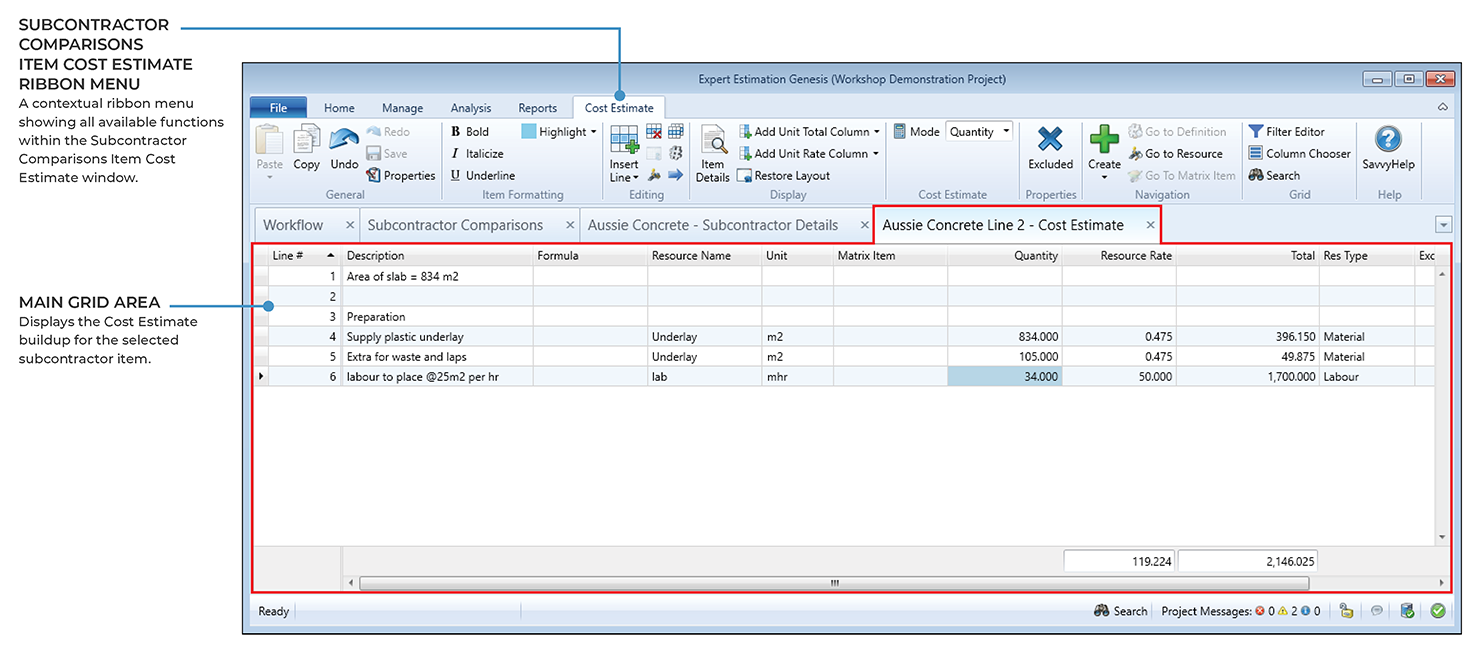 Subcontractor Comparisons – Item Cost Estimate window