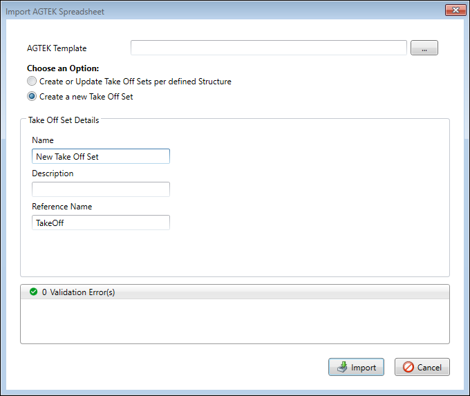 AGTEK Import with Create New Take Off Set option selected
