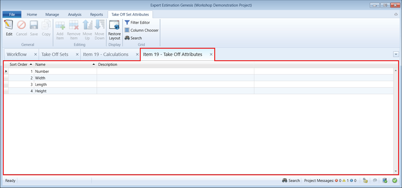 Take Off Sets provides the ability to create additional calculation columns known as Attributes to aide in calculating a Total.
